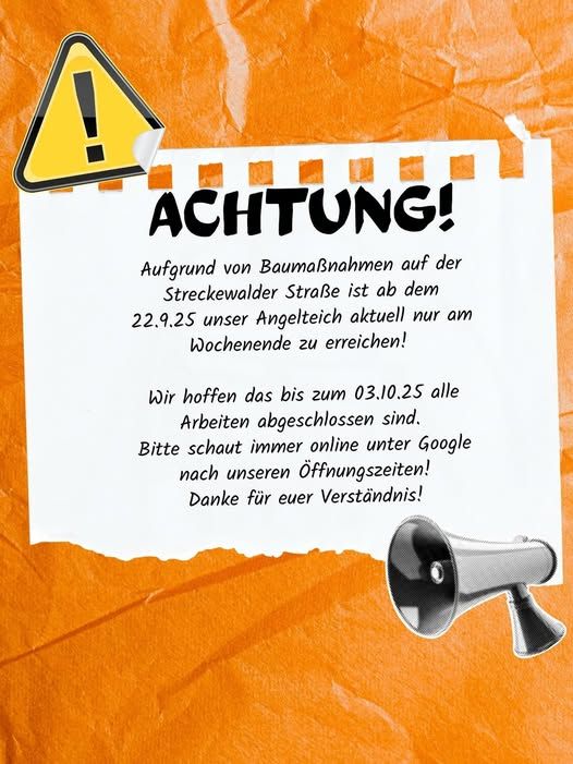 Das Betreten des Geländes erfolgt auf eigene Gefahr. Eltern haften für Ihre Kinder. Das Betreten sonstiger Fischereianlagen ist untersagt! Hunde sind bitte an die Leine zu nehmen!